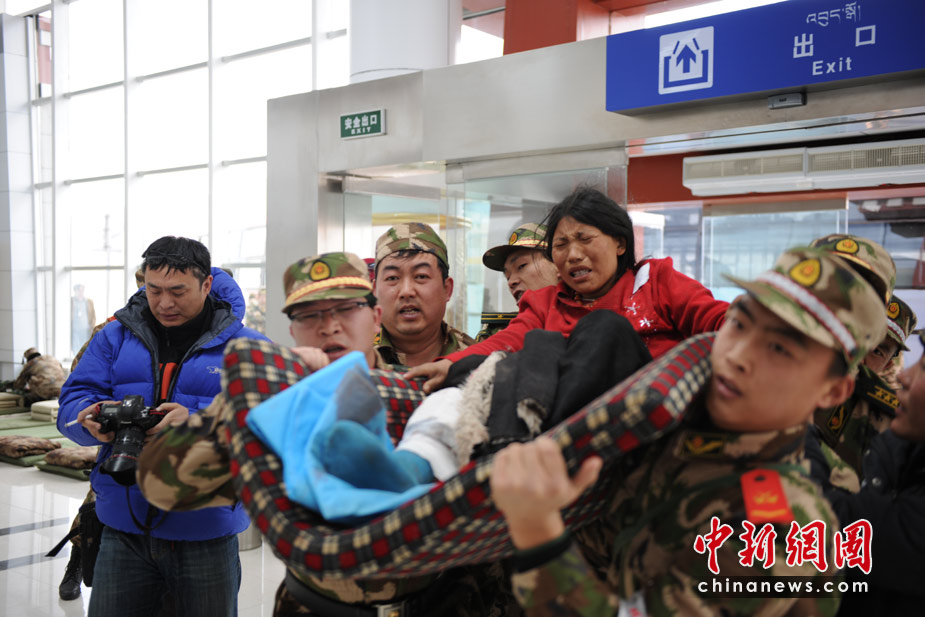 4月15日,玉樹地震傷員正源源不斷的從玉樹機場乘飛機,被運往成都等地救治。 中新社/中新網(wǎng)記者 符永康 攝