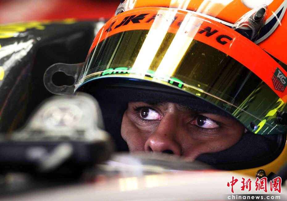 4月16日,2010國際汽聯(lián)F1世界錦標賽上海站在上海國際賽車場開始車手第一、第二次練習賽。圖為代表印度車隊出戰(zhàn)的印度車手查鐸。中新社記者 任晨鳴 攝