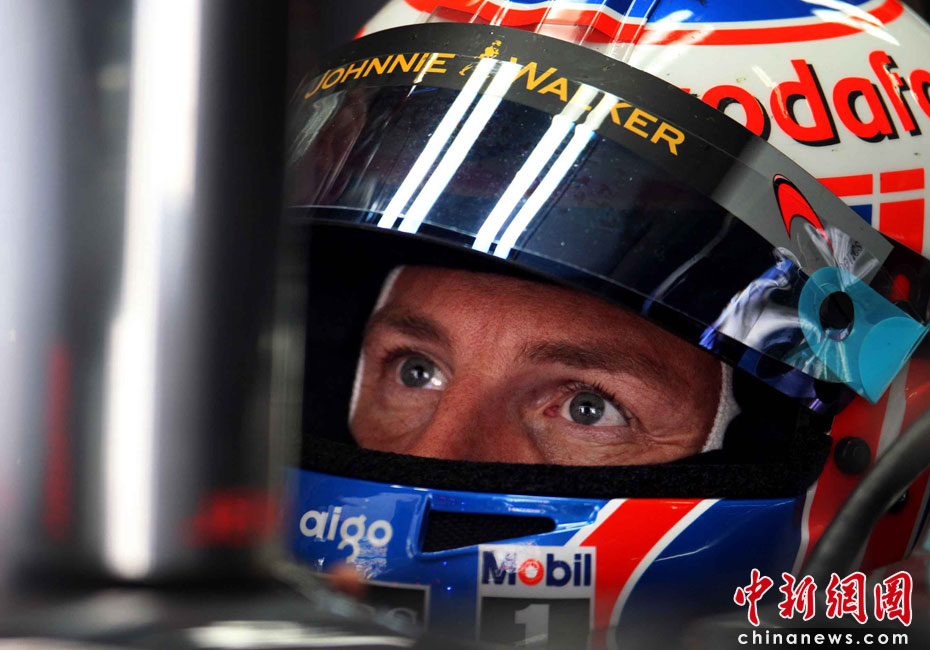 4月16日,2010國際汽聯(lián)F1世界錦標(biāo)賽上海站在上海國際賽車場開始車手第一、第二次練習(xí)賽。圖為代表邁凱輪車隊出戰(zhàn)的英國車手巴頓。中新社記者 任晨鳴 攝