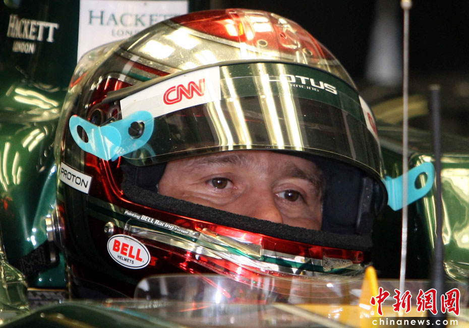 4月16日,2010國(guó)際汽聯(lián)F1世界錦標(biāo)賽上海站在上海國(guó)際賽車場(chǎng)開始車手第一、第二次練習(xí)賽。圖為代表蓮花車隊(duì)出戰(zhàn)的意大利車手特魯利。中新社記者 任晨鳴 攝