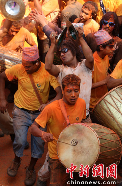 4月15日,尼泊爾迎來一年一度的傳統(tǒng)節(jié)日“尼歷新年”。當日全國放假一天,在加德滿都郊區(qū)人們涌上街頭潑灑紅粉慶祝新年。圖片來源:中國新聞網