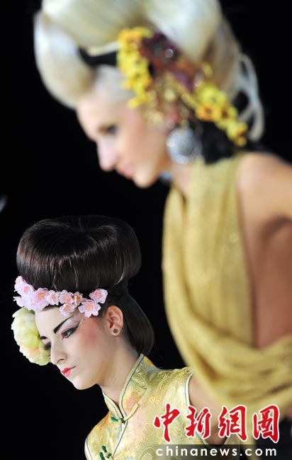 近日,第九屆“水晶天使”國際發(fā)型藝術(shù)節(jié)開幕,設(shè)計師紛紛秀出自己設(shè)計的新款發(fā)型。圖片來源:中國新聞網(wǎng)
