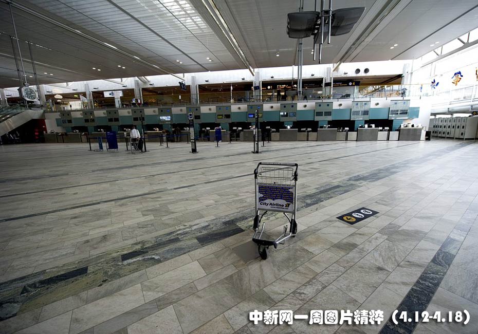 瑞典一機場大廳辦理登機手續(xù)的窗口前空無一人,此前冰島火山噴發(fā)產(chǎn)生的火山灰導致歐洲多個機場被迫關(guān)閉。