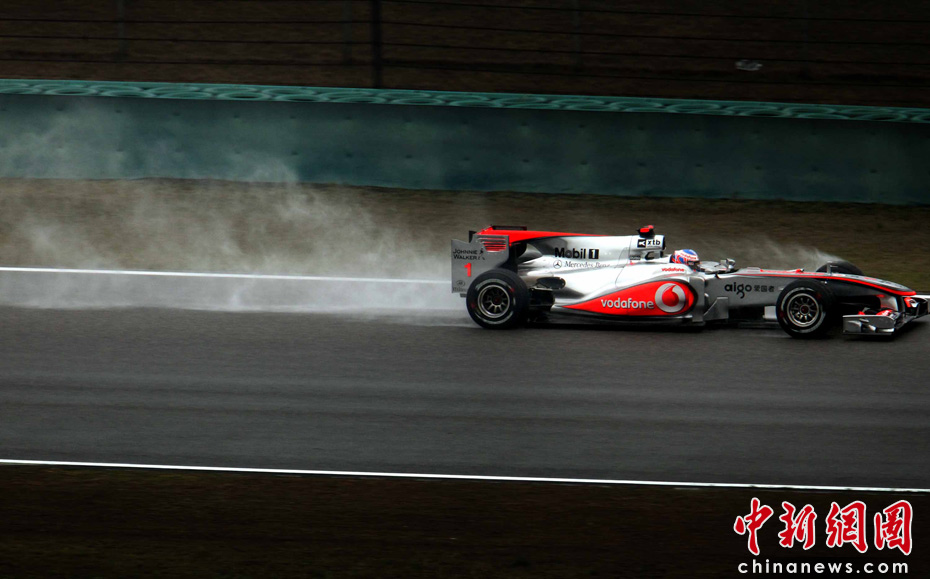 4月18日下午,2010國際汽聯(lián)F1世界錦標(biāo)賽上海站在上海國際賽車場舉行正式比賽,邁凱輪車隊(duì)的英國車手巴頓在雨中獲得冠軍、隊(duì)友、英國車手漢密爾頓獲得亞軍,梅賽德斯GP車隊(duì)的德國車手羅斯伯格獲得季軍。圖為漢密爾頓。中新社記者 任晨鳴 攝
