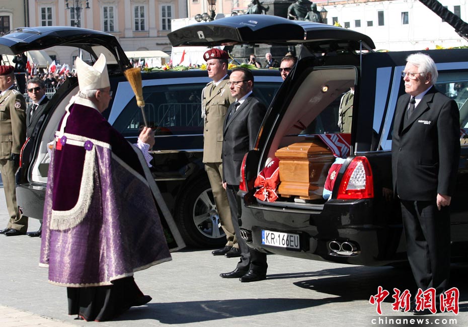 當?shù)貢r間4月18日,卡欽斯基夫婦的葬禮在波蘭南部城市克拉科夫舉行。波蘭總統(tǒng)卡欽斯基及其夫人乘坐的專機10日在俄羅斯斯摩棱斯克失事,機上人員全部遇難。圖片來源:中國新聞網(wǎng)