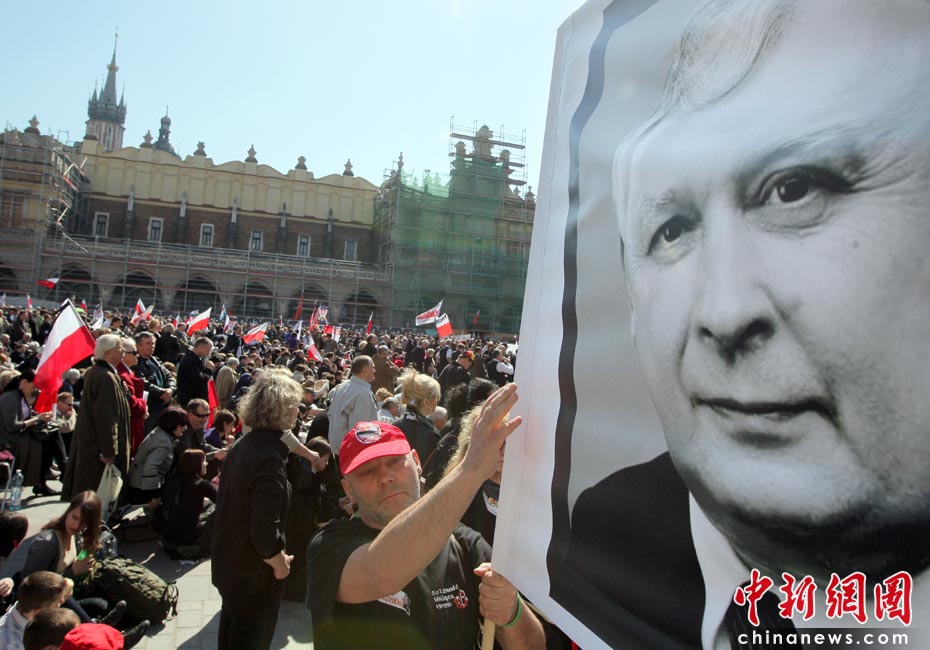 當(dāng)?shù)貢r(shí)間4月18日,卡欽斯基夫婦的葬禮在波蘭南部城市克拉科夫舉行。波蘭總統(tǒng)卡欽斯基及其夫人乘坐的專機(jī)10日在俄羅斯斯摩棱斯克失事,機(jī)上人員全部遇難。圖片來(lái)源:中國(guó)新聞網(wǎng)