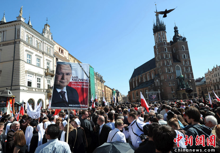 當?shù)貢r間4月18日,卡欽斯基夫婦的葬禮在波蘭南部城市克拉科夫舉行。波蘭總統(tǒng)卡欽斯基及其夫人乘坐的專機10日在俄羅斯斯摩棱斯克失事,機上人員全部遇難。圖片來源:中國新聞網(wǎng)