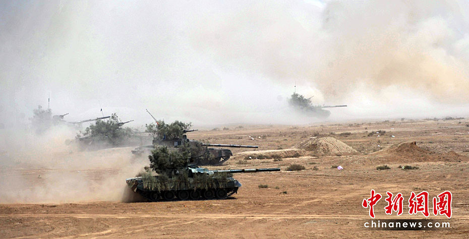 巴基斯坦軍隊4月18日出動戰(zhàn)機、坦克和重型火炮,在靠近印度邊界的東部沙漠地區(qū)舉行“新決心—3”軍事演習。圖片來源:中國新聞網