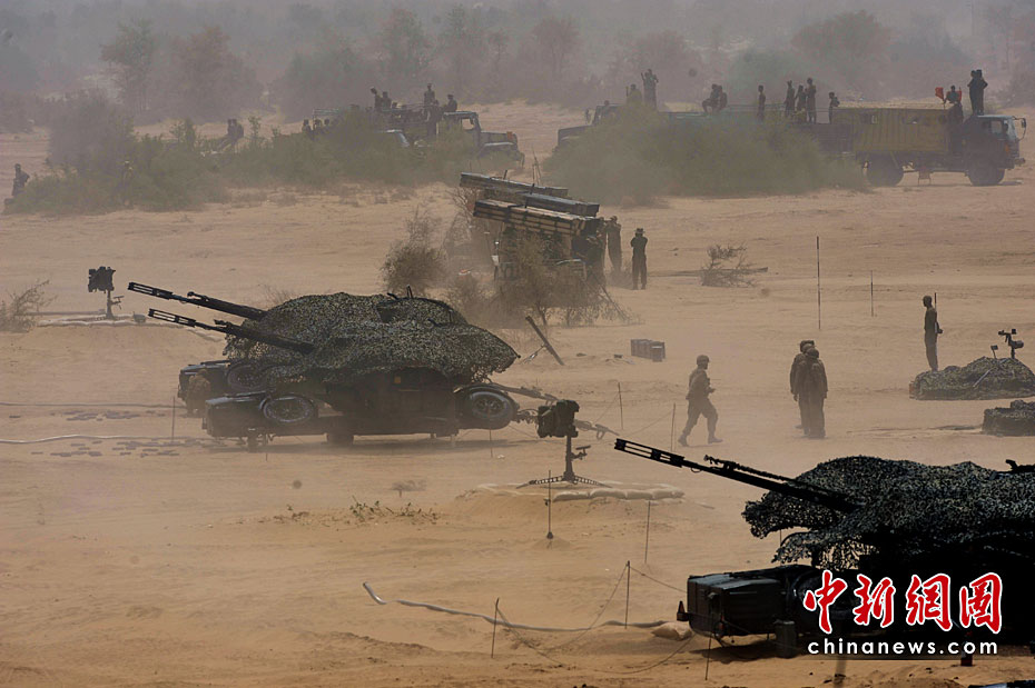 巴基斯坦軍隊(duì)4月18日出動(dòng)戰(zhàn)機(jī)、坦克和重型火炮,在靠近印度邊界的東部沙漠地區(qū)舉行“新決心—3”軍事演習(xí)。圖片來源:中國新聞網(wǎng)