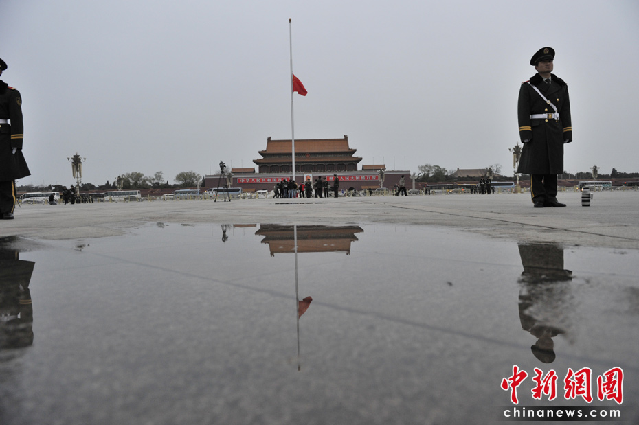 天安門廣場下半旗志哀