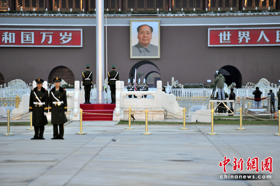 升旗儀式在清晨5:30左右進(jìn)行,國旗升上旗桿頂部后,再向下降至半旗。