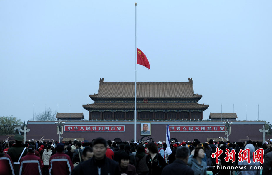 天安門廣場(chǎng)下半旗志哀