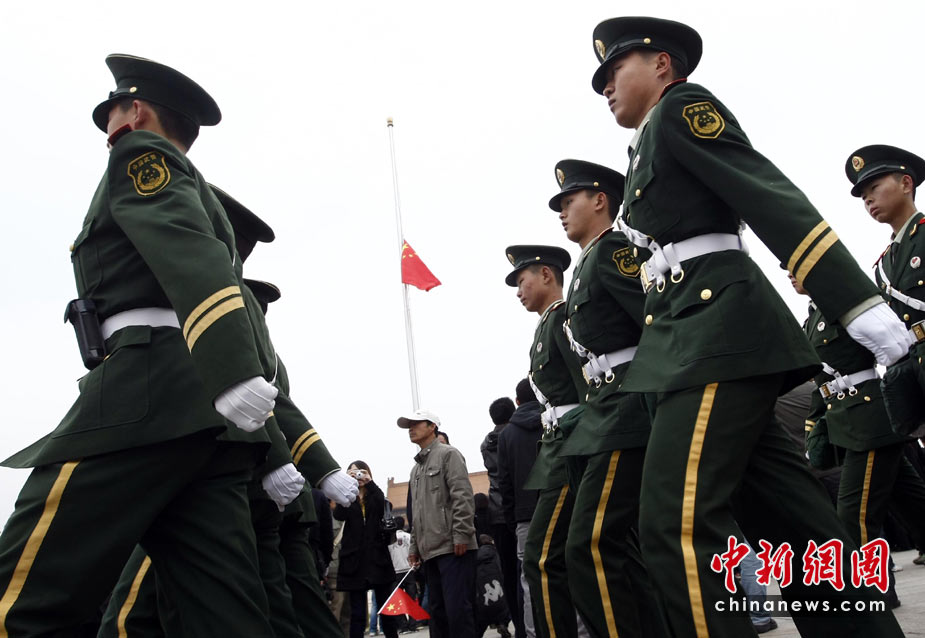 4月21日,為表達全國各族人民對青海玉樹地震遇難同胞的深切哀悼,中國國務(wù)院決定,舉行全國哀悼活動,全國和駐外使領(lǐng)館下半旗志哀,停止公共娛樂活動。中新社發(fā) 杜洋 攝