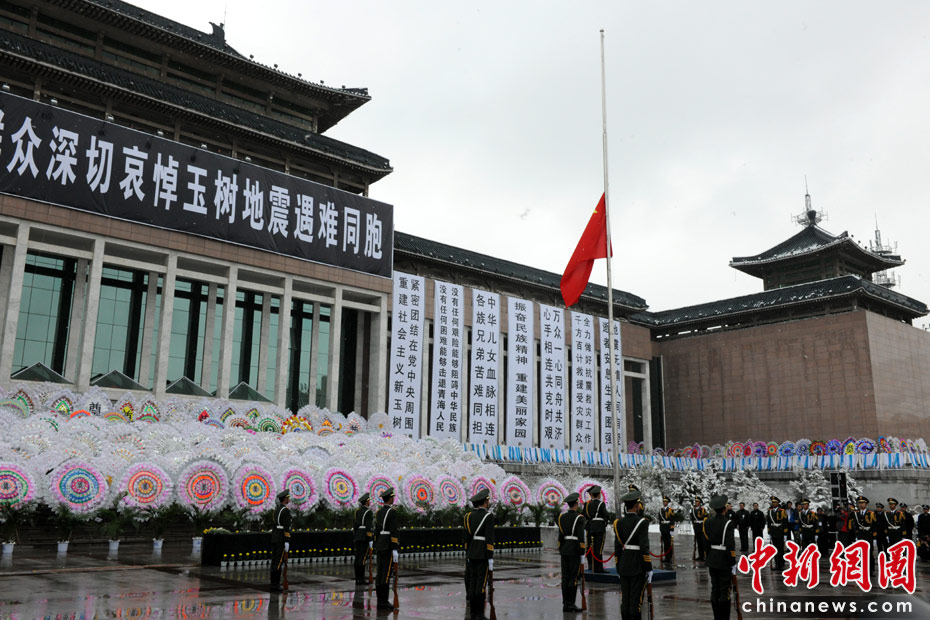 21日上午9時(shí)許,西寧各界民眾冒雪陸續(xù)來(lái)到該市最大的廣場(chǎng)——新寧廣場(chǎng),悼念玉樹(shù)地震遇難同胞。中新社記者 符永康 攝