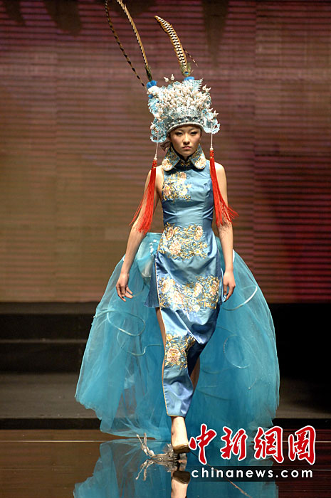 4月20日晚,首屆海西國(guó)際時(shí)裝周在福建石獅閉幕,本屆時(shí)裝周吸引了來(lái)自海峽兩岸的紡織服裝界企業(yè)家和知名服裝設(shè)計(jì)師。期間舉辦了12場(chǎng)時(shí)裝品牌和設(shè)計(jì)師作品動(dòng)態(tài)發(fā)布會(huì)。圖為模特展示古今潮流結(jié)合的服裝。王東明 攝