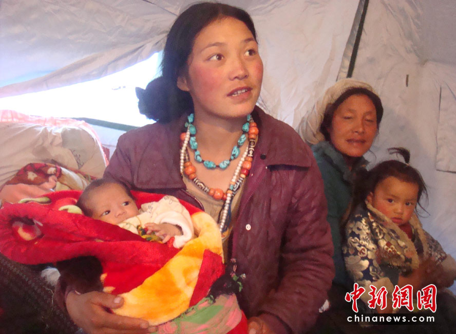 襁褓中這位還沒(méi)有取名的藏族嬰兒,堪稱玉樹地震災(zāi)區(qū)最令人愛(ài)憐的藏族小嬰兒——出生第十五天就遭遇到青海玉樹強(qiáng)烈地震,媽媽和多位家人不幸罹難。如今小嬰兒由幸存的姑媽呵護(hù)著,棲身在第二炮兵總醫(yī)院醫(yī)療隊(duì)的救災(zāi)帳篷里。中新社發(fā) 賈國(guó)榮 攝