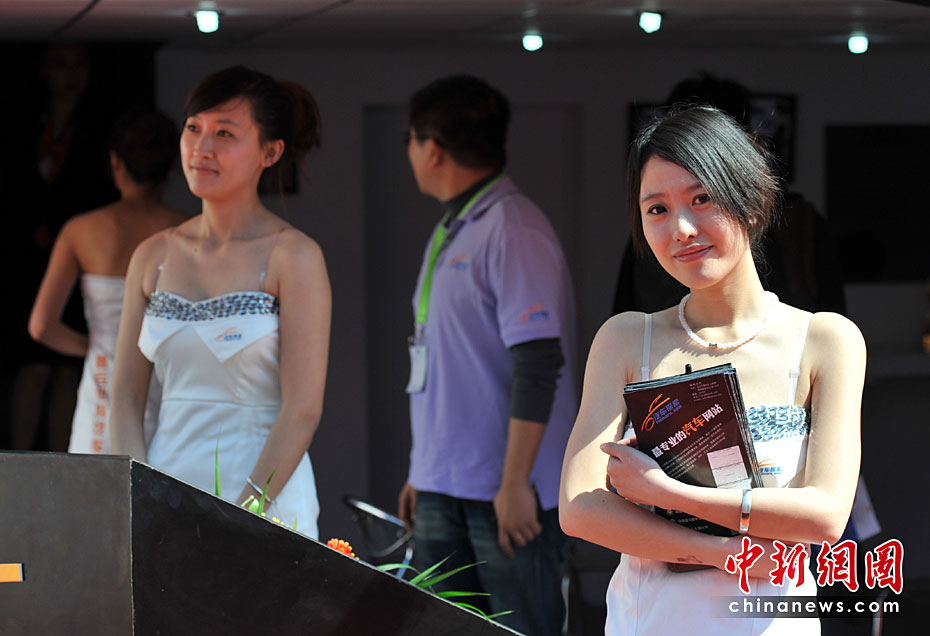 “第十一屆北京國際車展”場內車模爭奇斗艷,場外美女不甘示弱。中新網(wǎng)記者 金碩 攝