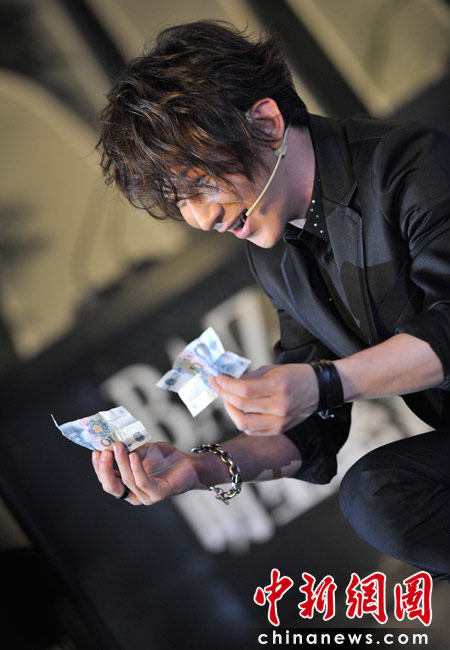 4月25日,由《時尚芭莎》雜志社主辦的第8屆“BAZAAR明星慈善夜”活動在上海舉行,圖為劉謙為現(xiàn)場嘉賓表演精彩炫目的魔術(shù)。 中新網(wǎng)記者 金碩 攝