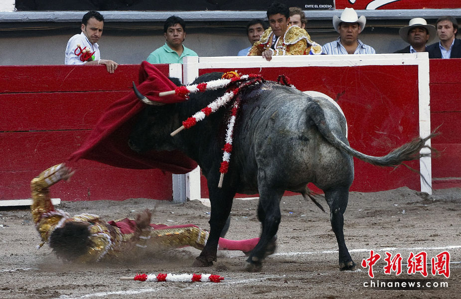 24日,西班牙知名斗牛士何塞·托馬斯在墨西哥斗牛時(shí)遭一頭公牛頂傷,神志不清。