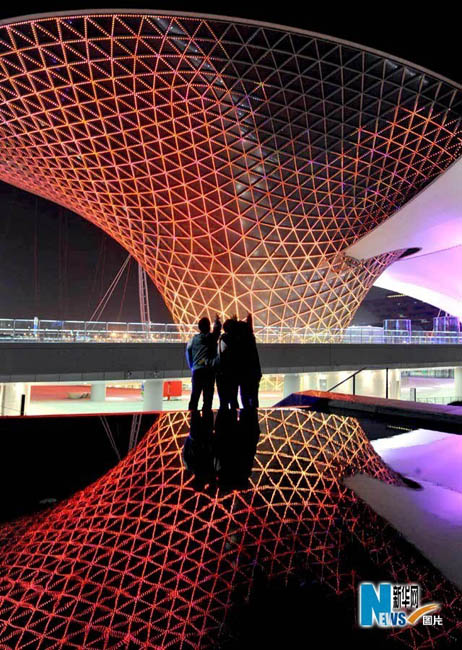 靜待開幕的世博園沉浸在一片暮色中,流光溢彩,給人無(wú)限遐想。從外灘到世博園,“夜”上海不斷延伸,讓人激情跳躍。圖片來源:新華網(wǎng)孫巍攝