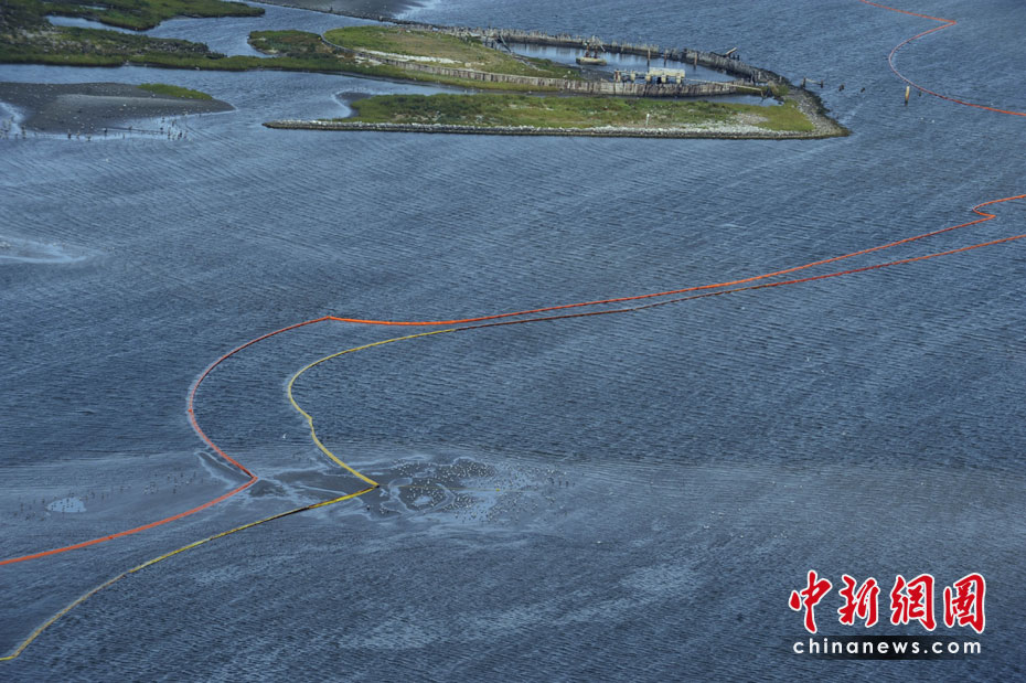 4月30日,在美國路易斯安那州海岸,為阻隔原油擴散而設(shè)的護欄帶被海風(fēng)浪沖到岸邊。當(dāng)天,美國總統(tǒng)奧巴馬下令調(diào)查墨西哥灣石油鉆井平臺爆炸事件,以避免將來類似事件再次發(fā)生。平臺爆炸沉沒后泄漏的原油當(dāng)天已漂至美國沿岸。圖片來源:中國新聞網(wǎng)