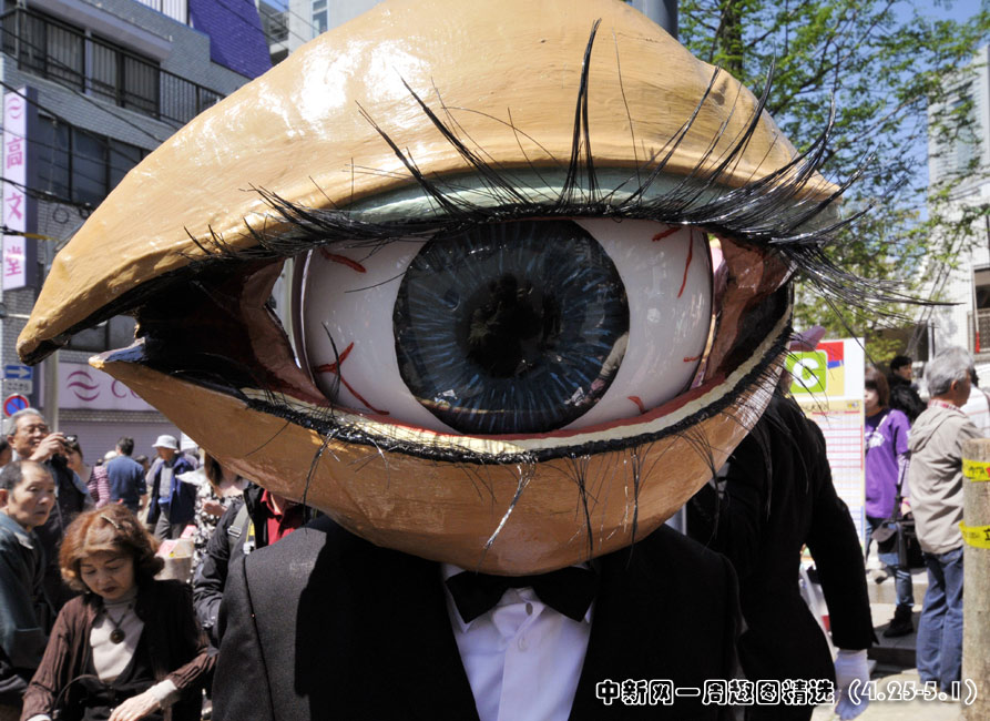 4月26日,日本一個表演藝術(shù)團(tuán)體扮成“獨眼怪人”在街頭亮相,大玩行為藝術(shù)。圖片來源:中國新聞網(wǎng)>>點擊觀看詳細(xì)內(nèi)容