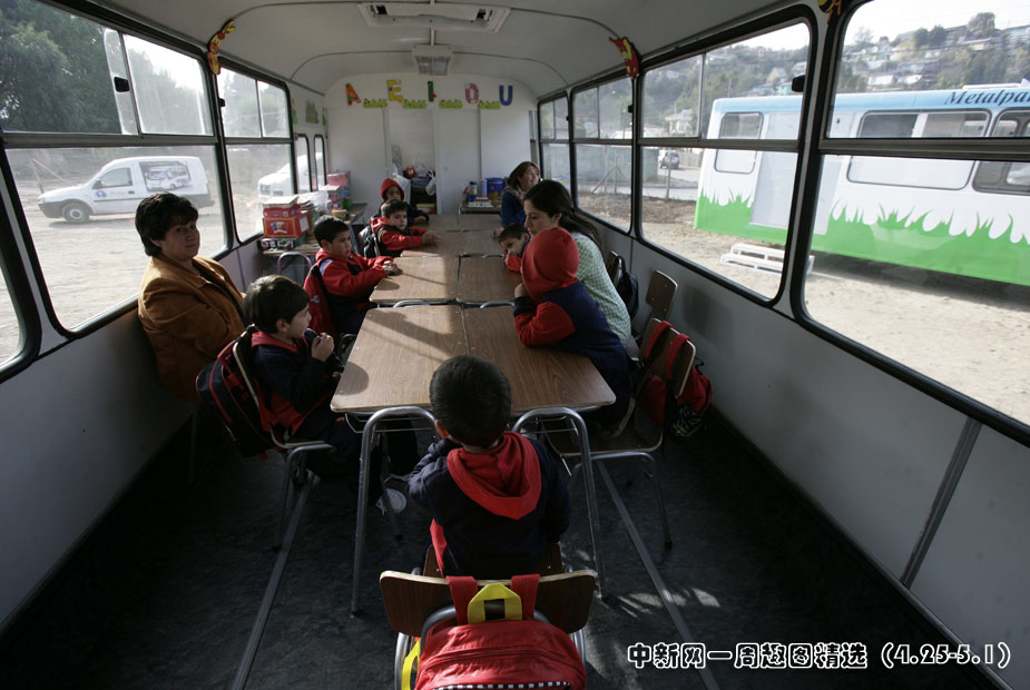 4月26日,今年2月遭受8.8級(jí)強(qiáng)烈地震的智利康塞普西翁市,兒童們?cè)凇鞍褪繉W(xué)校”里上課。圖片來(lái)源:中國(guó)新聞網(wǎng)>>點(diǎn)擊觀看詳細(xì)內(nèi)容