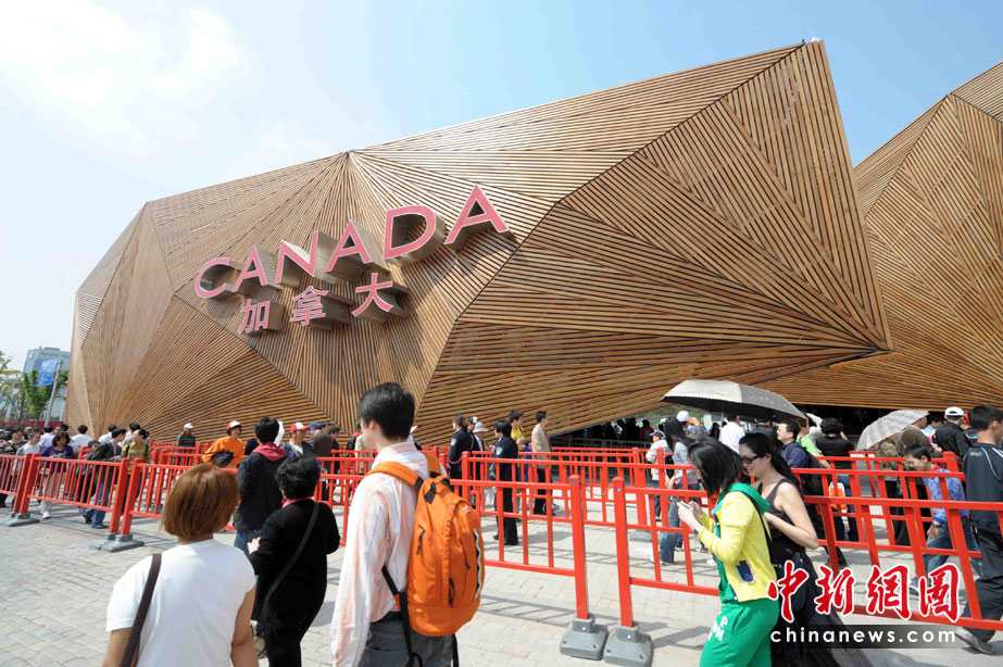 5月1日,上海世博會(huì)正式開園迎客,首批游客入園參觀。圖為數(shù)以萬計(jì)的海內(nèi)外觀眾陸續(xù)步入加拿大館參觀。中新社發(fā) 陳文 攝