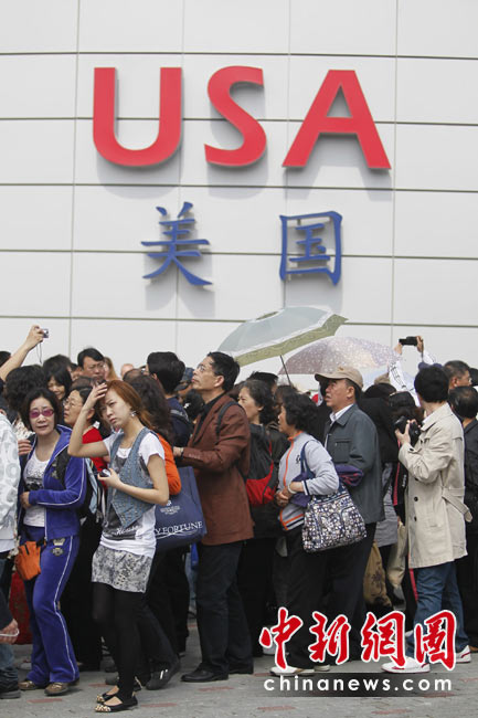 5月1日,上海世博會(huì)正式開園迎客,首批游客入園參觀。圖為在美國(guó)館外排隊(duì)的游客。