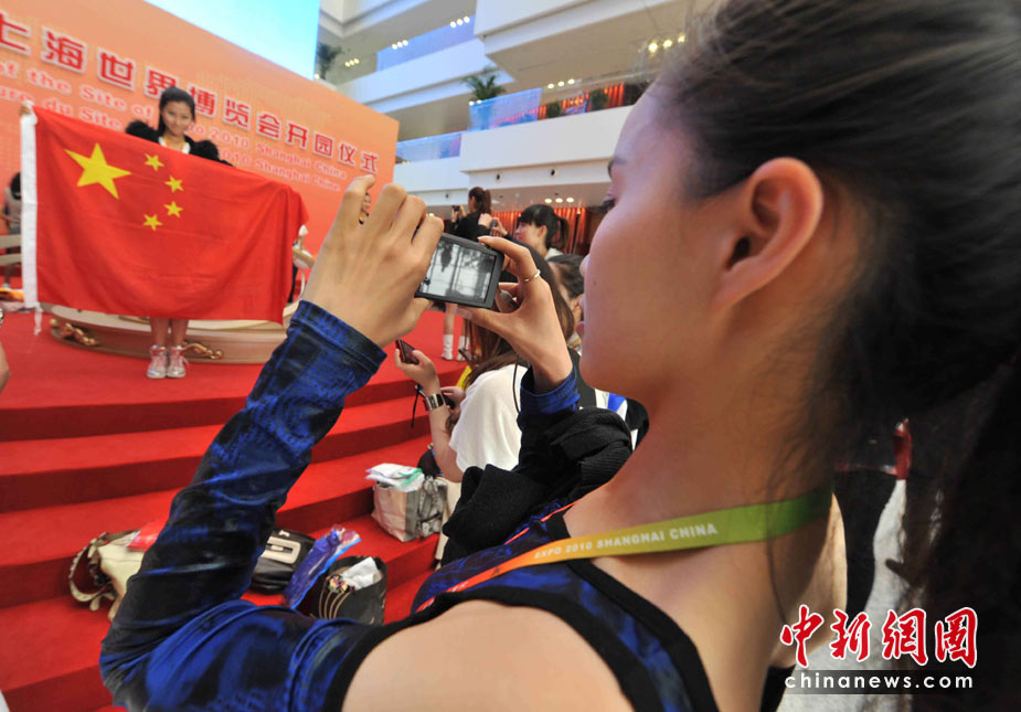 5月1日,為2010年上海世博會(huì)開(kāi)園服務(wù)的國(guó)旗女孩們,顯示出濃厚的國(guó)家和世界情結(jié)。中新社記者 賈國(guó)榮攝