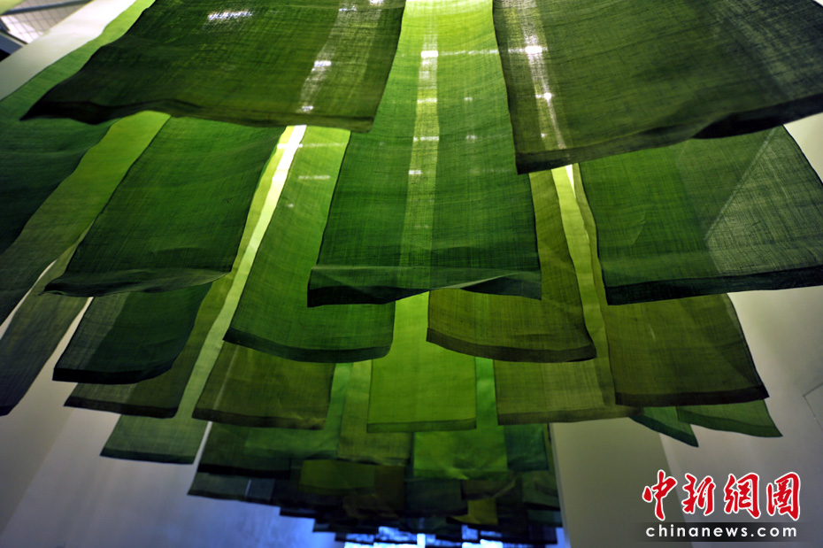 用天然染料染的麻布從天花板垂下,給人置身于美麗草原的感覺(jué)。中新網(wǎng)記者 王紅綱 攝