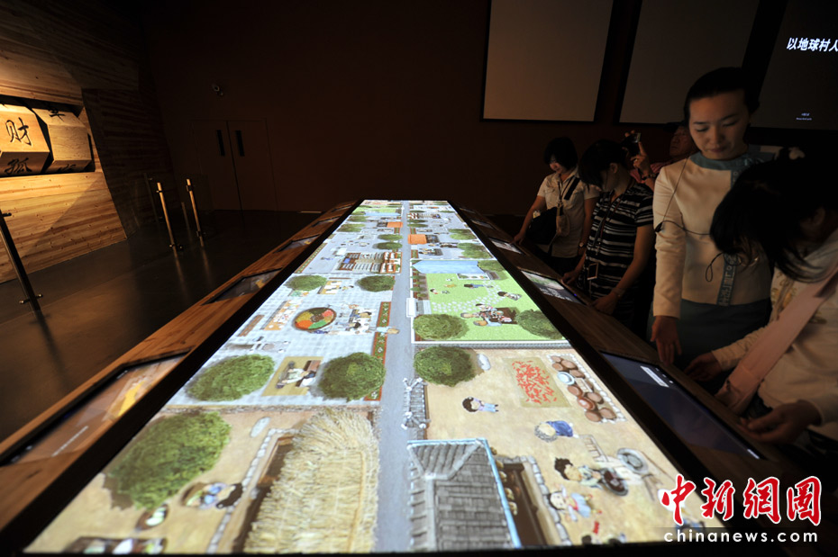 互動體驗游戲——觸摸大屏,觀看動畫。中新網(wǎng)記者 王紅綱 攝