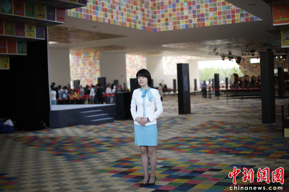 溫柔美麗的韓國(guó)館禮儀小姐。中新網(wǎng)記者 盛佳鵬 攝