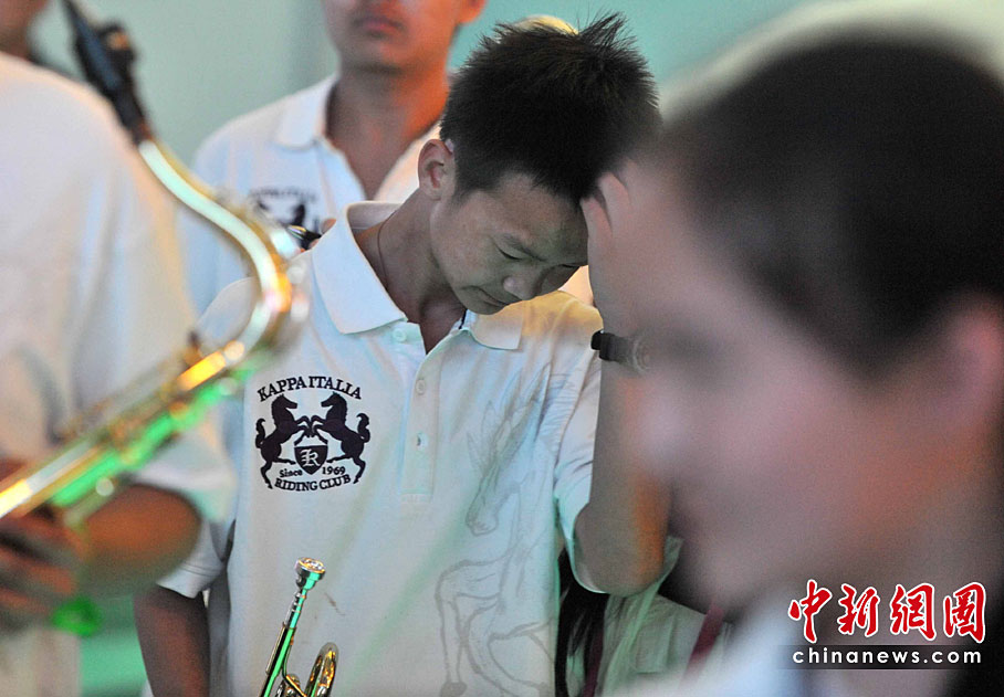 5月2日清晨,來自玉樹地震災(zāi)區(qū)結(jié)古鎮(zhèn)的藏族小樂手巴東珠,含著姐姐在地震中不幸遇難的悲痛心情,與小白楊中學(xué)生管弦樂團(tuán)來到上海世博會,為中國青海館觀眾獻(xiàn)上一曲《在那遙遠(yuǎn)的地方》。他悲歡交融的情懷和演藝,感動全場。巴東珠之前還是青海省人民醫(yī)院為地震傷員做藏語翻譯的志愿者。中新社記者 賈國榮 攝