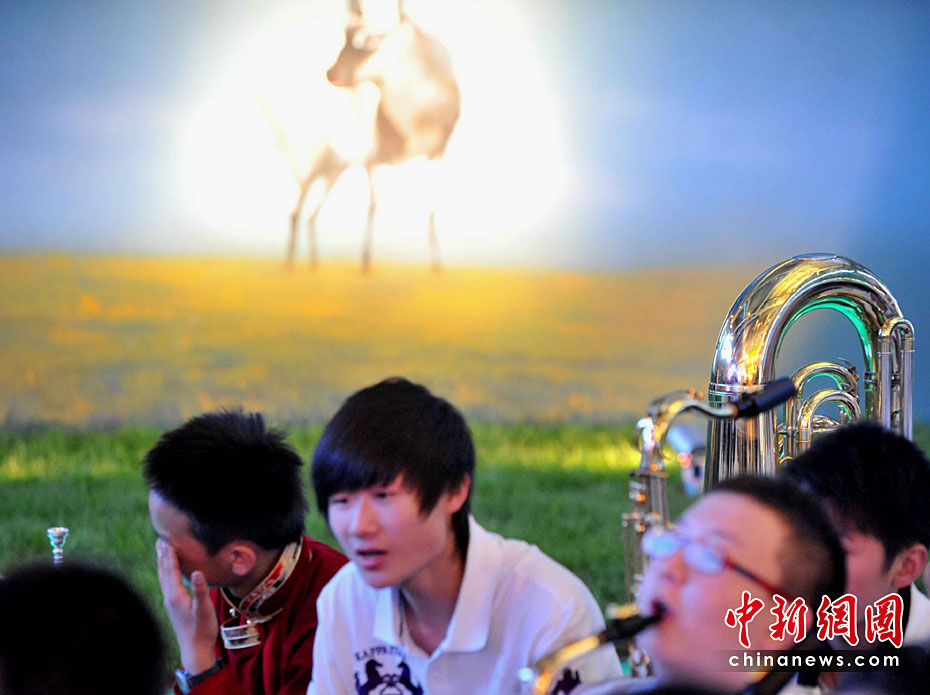 5月2日清晨,來自玉樹地震災(zāi)區(qū)結(jié)古鎮(zhèn)的藏族小樂手巴東珠,含著姐姐在地震中不幸遇難的悲痛心情,與小白楊中學(xué)生管弦樂團(tuán)來到上海世博會(huì),為中國(guó)青海館觀眾獻(xiàn)上一曲《在那遙遠(yuǎn)的地方》。他悲歡交融的情懷和演藝,感動(dòng)全場(chǎng)。巴東珠之前還是青海省人民醫(yī)院為地震傷員做藏語翻譯的志愿者。中新社記者 賈國(guó)榮 攝