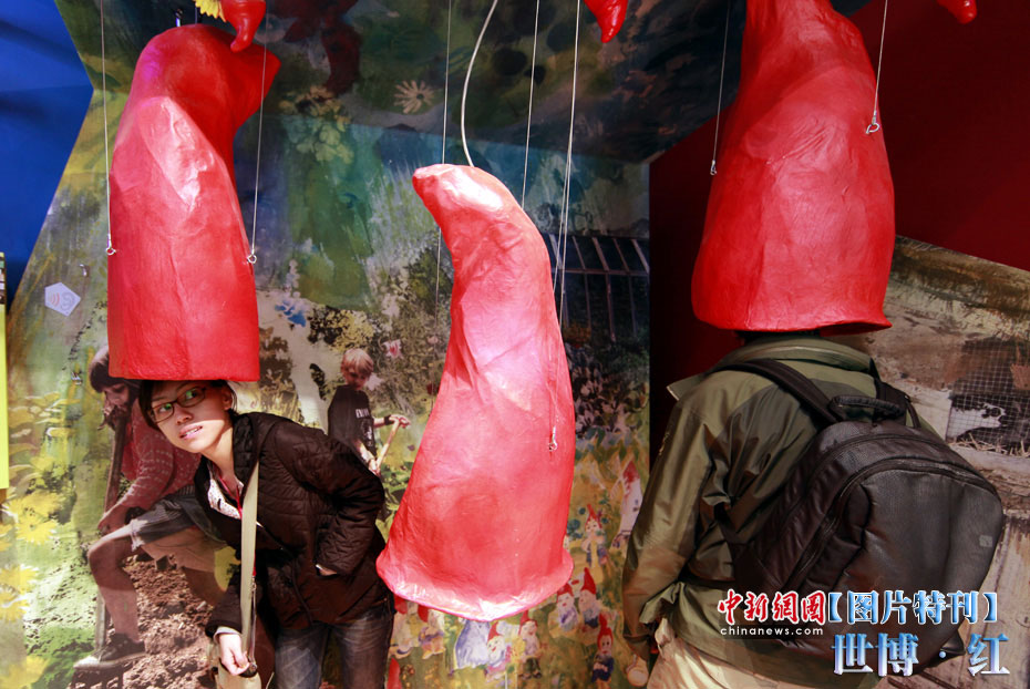 紅色象征著熱量與活力,紅色也象征著興奮與激情,在世博園區(qū)內(nèi)游覽,總會(huì)有一抹濃艷的紅色闖入到記者鏡頭之中,讓世博變得更加火辣。圖為德國(guó)館內(nèi)的互動(dòng)小游戲。中新社記者 盛佳鵬 攝