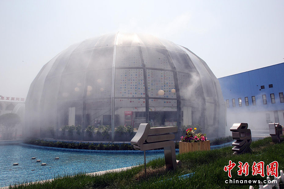 5月2日,上海世博會是第一個正式提出“低碳世博”理念的世博會,圍繞著這樣的理念,上海世博園區(qū)內(nèi)的低碳元素比比皆是。圖為世界氣象館墻體外層如人的皮膚,防風(fēng)、防雨、透氣。中新社發(fā) 湯彥俊 攝