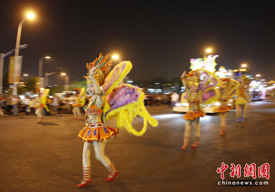 世博盛裝夜巡游 花車美女盡顯異域風(fēng)情