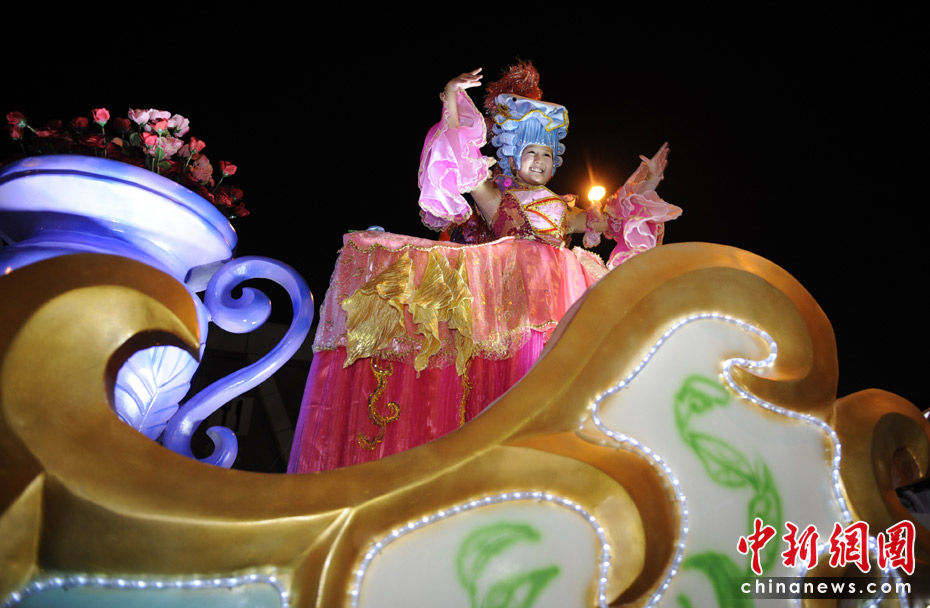 5月2日晚,由一輛輛充滿異域風情的花車和身著盛裝的表演者組成的“歡樂盛裝大巡游”在世博園區(qū)舉行。中新網(wǎng)記者 王紅綱 攝