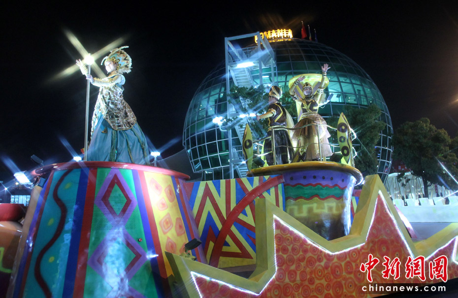 5月2日晚,由一輛輛充滿異域風情的花車和身著盛裝的表演者組成的“歡樂盛裝大巡游”在世博園區(qū)舉行。中新網(wǎng)記者 蘇丹 攝
