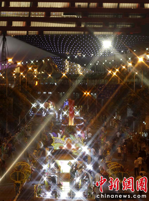 5月2日晚,由一輛輛充滿異域風情的花車和身著盛裝的表演者組成的“歡樂盛裝大巡游”在世博園區(qū)舉行。中新網(wǎng)記者 盛佳鵬 攝