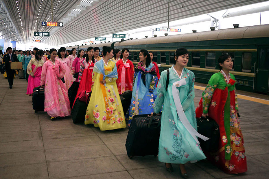 5月2日,載著198名朝鮮紅樓夢劇組演員的專列駛?cè)氲|口岸。由朝鮮國家級藝術(shù)團-血海歌劇團創(chuàng)作的歌舞劇《紅樓夢》將于5月6日至9日登陸北京電視臺大劇院,這個超大演員陣容亦創(chuàng)下近年來華國外演出人數(shù)之最。圖片來源:新華網(wǎng)