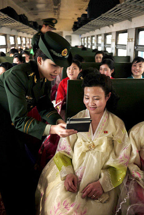 5月2日,載著198名朝鮮紅樓夢(mèng)劇組演員的專列駛?cè)氲|口岸。由朝鮮國家級(jí)藝術(shù)團(tuán)-血海歌劇團(tuán)創(chuàng)作的歌舞劇《紅樓夢(mèng)》將于5月6日至9日登陸北京電視臺(tái)大劇院,這個(gè)超大演員陣容亦創(chuàng)下近年來華國外演出人數(shù)之最。圖片來源:新華網(wǎng)