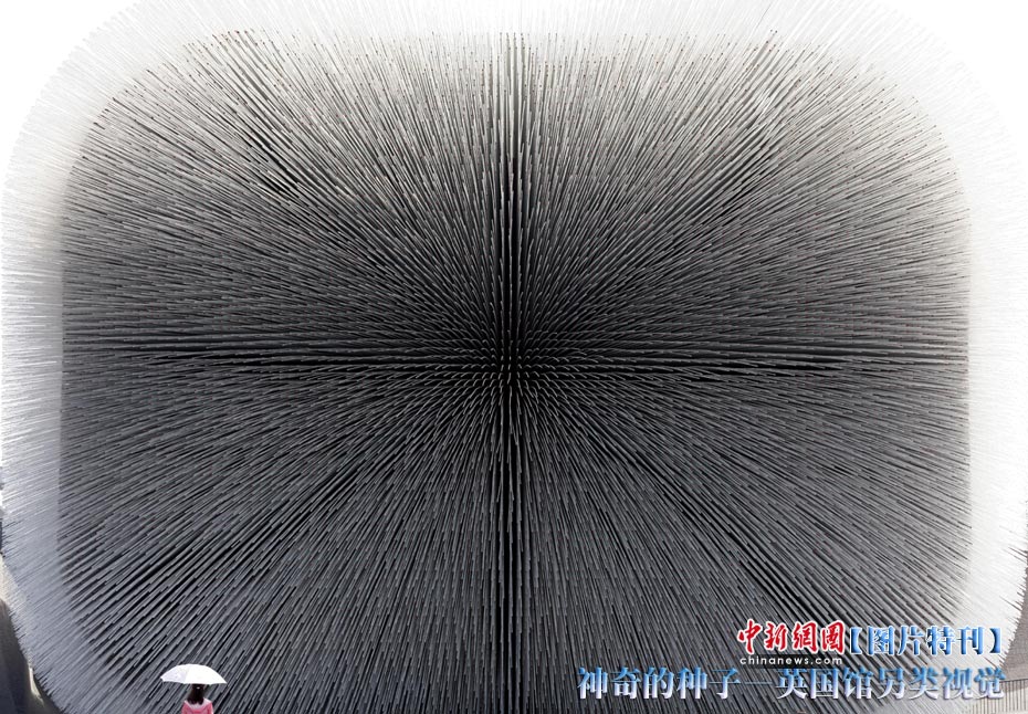 上海世博園開園才數(shù)日,自號(hào)“種子圣殿”的英國(guó)館已成人氣最旺場(chǎng)館之一。該館由6萬根亞克力桿巧妙構(gòu)成,隨風(fēng)搖動(dòng),頗為新奇。其每根桿子里都含有植物種子。中新社記者 盛佳鵬 攝