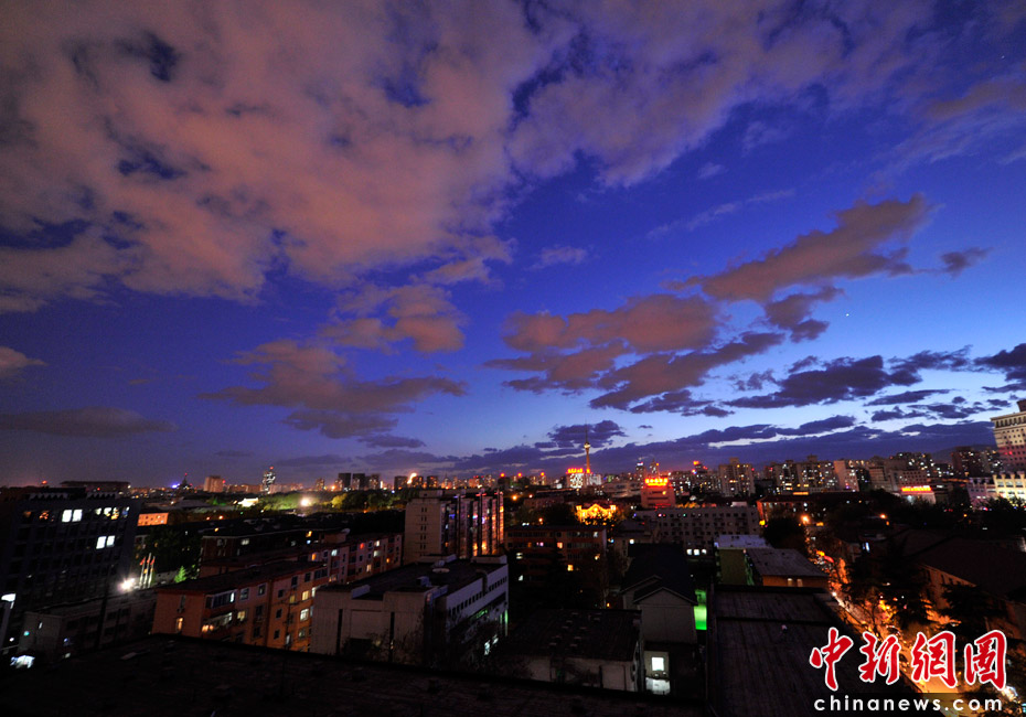 5月5日立夏,京城降雨今晨剛剛結(jié)束,霧氣伺機(jī)又起。傍晚時分,隨著四級北風(fēng)的到來,京城天氣逐漸轉(zhuǎn)晴,霧氣慢慢消散天空彤云密布夜色瑰麗。中新網(wǎng)記者 金碩 攝