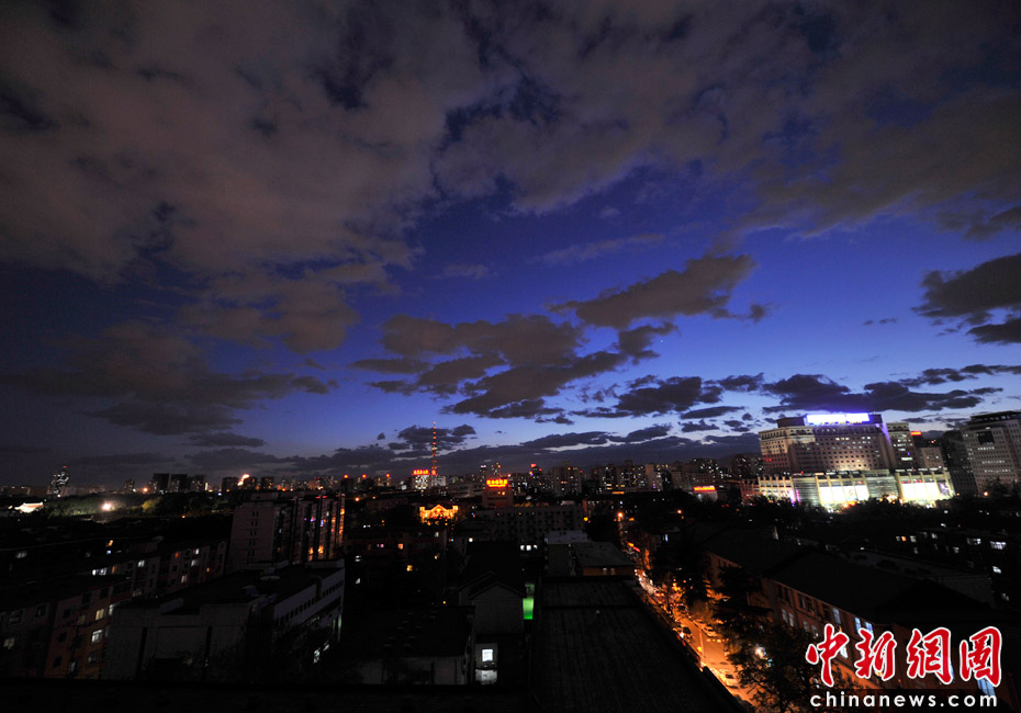 5月5日立夏,京城降雨今晨剛剛結(jié)束,霧氣伺機又起。傍晚時分,隨著四級北風的到來,京城天氣逐漸轉(zhuǎn)晴,霧氣慢慢消散天空彤云密布夜色瑰麗。中新網(wǎng)記者 金碩 攝