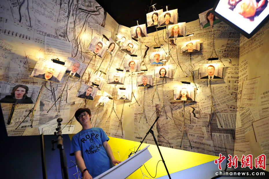 站在模擬“唱詩班”前,游客也可以高歌一曲。中新網(wǎng)記者 王紅綱 攝