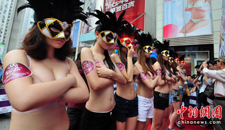 2010年5月8日,在廣州天河某個(gè)百貨商場(chǎng)門(mén)口上演了一場(chǎng)另類(lèi)的“解內(nèi)衣”比賽。