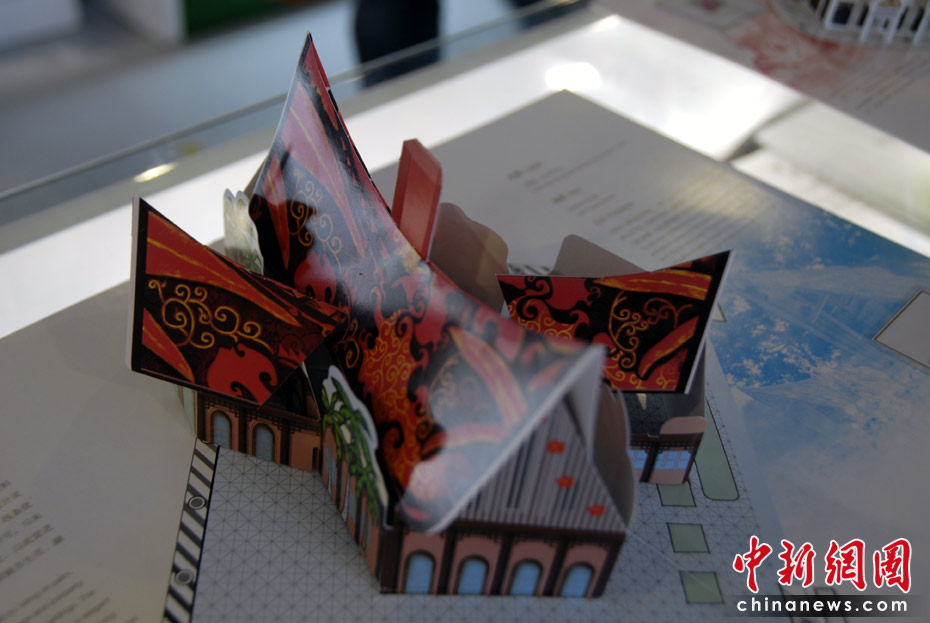 世博園區(qū)內(nèi)的特許商品店里,折紙場館惟妙惟肖,頗受游客的喜愛。圖為馬來西亞館紙模型。中新網(wǎng)記者 吳歆 攝