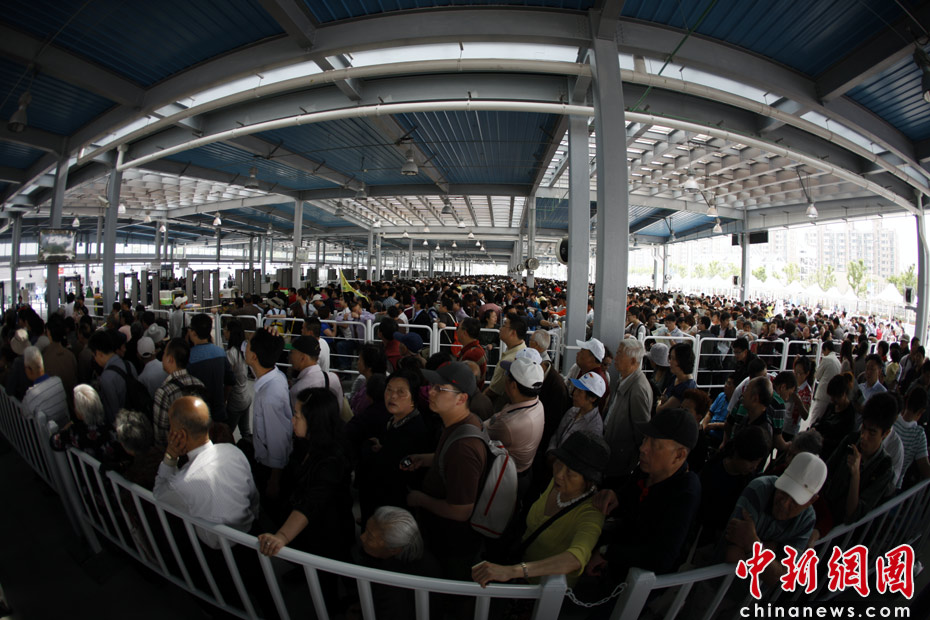圖為排隊進入園區(qū)參觀的游客。中新社記者 盛佳鵬 攝